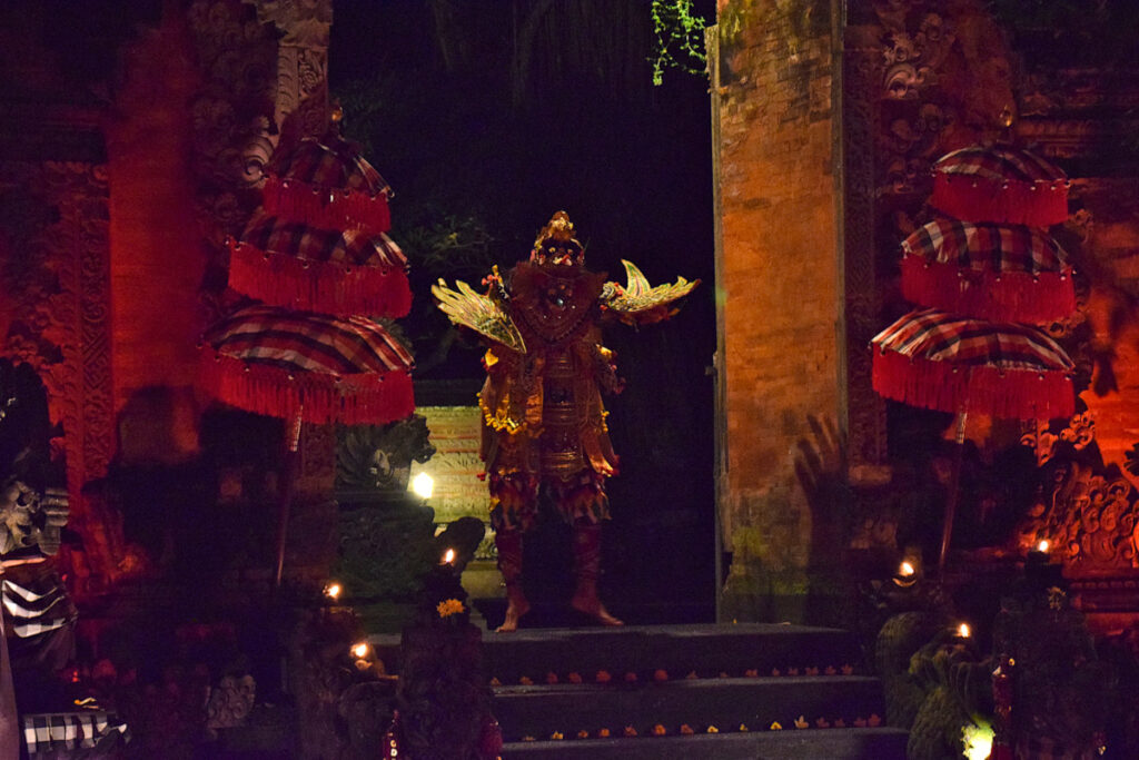 Kecak is a dance usually performed by men, based on the epic Ramayana, during which the men encircling the other performers all continually chant “chak.” As I was not familiar with Ramayana, the story was a little hard to follow. But we were given little leaflets that summarized the story.