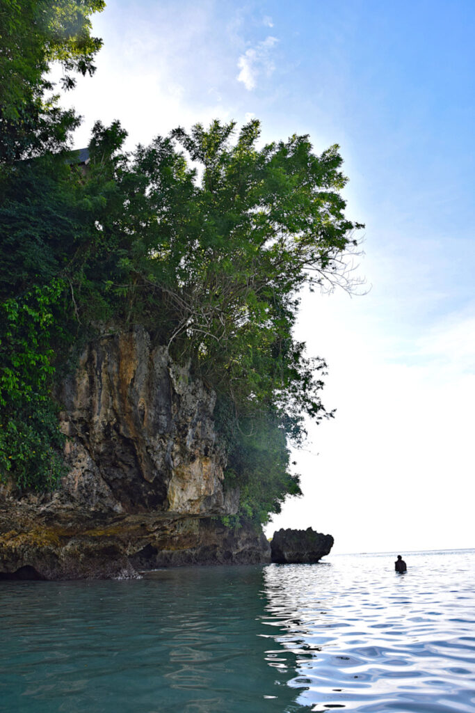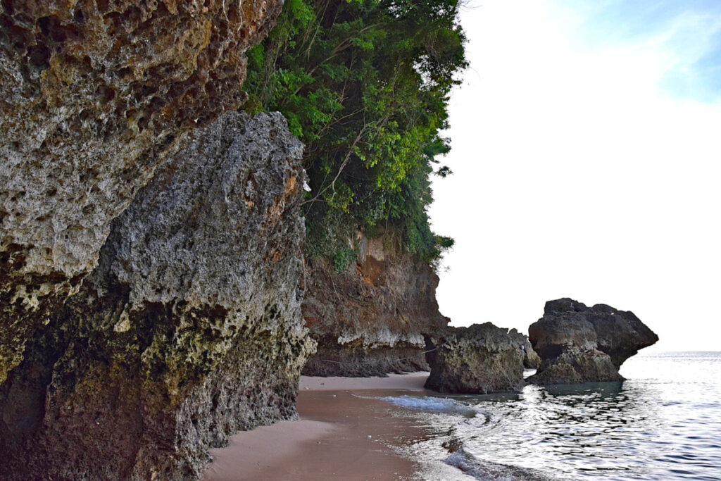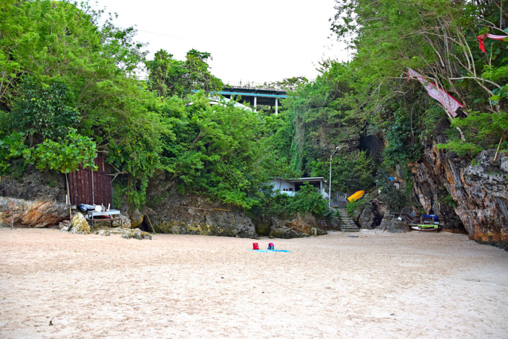 It is a relatively small beach that requires going through a cool rock formation and down some steps to reach. We paid 10,000 IDR (~$0.70 USD) as an entrance fee.