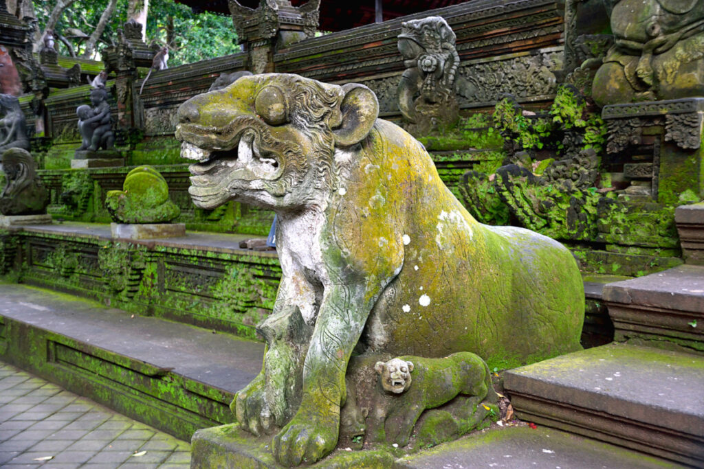Now, the monkey forest was an experience. As soon as we walked slightly past the ticket office, a monkey came from out of nowhere, landed on my friend’s back, and stole the hand sanitizer dangling from her backpack. It disappeared as quickly as it appeared. Shortly after that, another monkey tried to take her water bottle from the side pocket of her bag, but it was full of water and thus too heavy for the little thief.